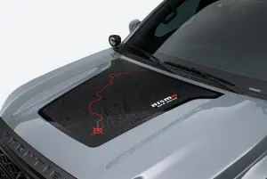 Nissan Motorsports is thrilled to announce the NISMO Off Road Hood Graphic for the D41 Frontier. This new hood graphic features a bold design that compliments the 2022+ Frontier’s sculpted and aggressive hood contours and body lines, and is a great way to an adventurous, off-road design to the front end of the any new Frontier! Features: - Matte black topographical design with red and white NISMO Off Road logo. - Premium high quality and performance adhesive film. - Durable and long-lasting application able to withstand elements. - Designed to accentuate factory body lines for increased appeal and optimum fit and finish.